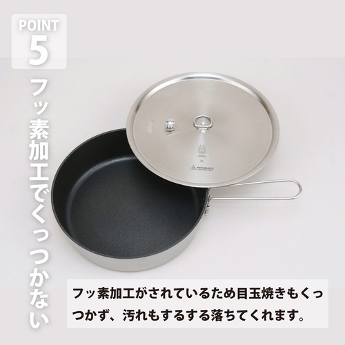 耐久性と熱伝導性に優れた構造。フッ素加工によりこびり付きにくく、お手入れ簡単。